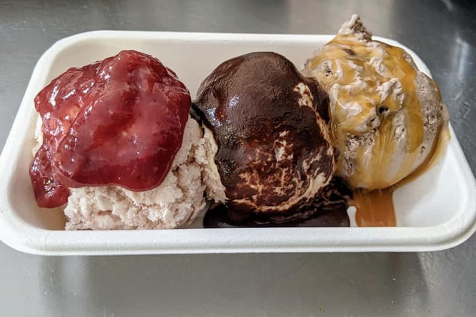 Two Cows Creamery is located in the southern Black Hills in the town of Hot Springs. We source our milk and cream directly from Stensland Family Farms, where our proprietary formula is followed to make our super premium Two Cows base ice cream mix. The ingredients are simple – cream, milk, organic sugar and a natural food stabilizer. When making our flavors, we do not use artificial flavors or colors; everything you eat is wholesome real food. We offer handcrafted ice cream, gelato and sorbet, as well as soups, sandwiches, burgers, pot pie, quiche and salads. Our hours are 1-6 p.m. on Thursday, 11 a.m.-7:30 p.m. on Friday and Saturday, and 12-6 p.m. on Sunday. See our Facebook for current hours and flavors.