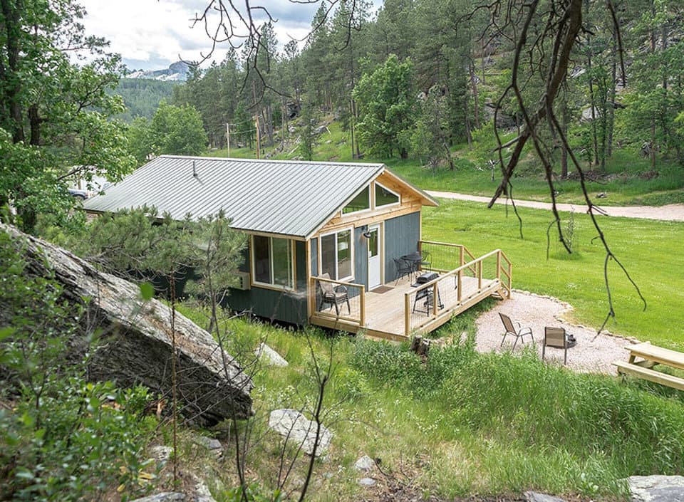 Hinterwood Inn & Cabins is nestled in a quiet valley in the Black Hills near Keystone and is centrally located to all the nearby attractions, including a 7.3 mile drive to Mount Rushmore National Memorial. The Hinterwood property encompasses nearly 20 acres of a peaceful valley bordered by Black Hills National Forest to the north and east. Guests can walk right out their front door for a beautiful hike on public lands. There are four separate vacation rentals in the inn and four stand-alone cabins. All rentals are either newly built or newly renovated since the property was purchased in 2017. With modern and rustic touches throughout, we take pride is creating beautiful and comfortable spaces for you to enjoy.