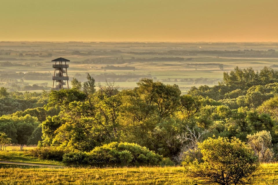 West of Sisseton, climb to the top of Nicollet Tower for a breathtaking view of three