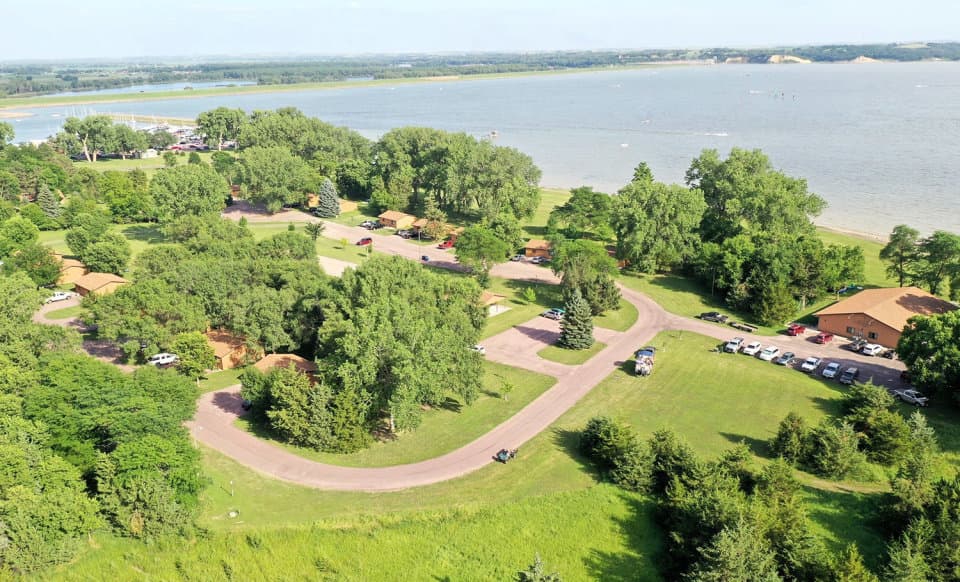 The Lewis & Clark Resort near Yankton along the Missouri River offers 24 modern motel rooms, 17 modern two- and three-bedroom cabins, and a 4,000-square-foot lodge with a 1,800-square-foot great room. Take advantage of the bike trail, feel free to bring your own bike or rent one here. There is a heated outdoor pool, a playground, firepits and two large picnic shelters. There are outdoor games to rent (volleyball, croquet, bean bags, boche ball), as well as a DVD player for those unexpected rainy days. The resort is within walking distance of the marina, restaurant and a sandy beach. We are open from May until November.